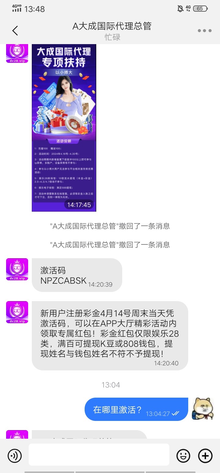 问哪里看到的话,不要说论坛看到的,随便说朋友介绍的或者QQ打狗群看到的,勿充值白嫖即可