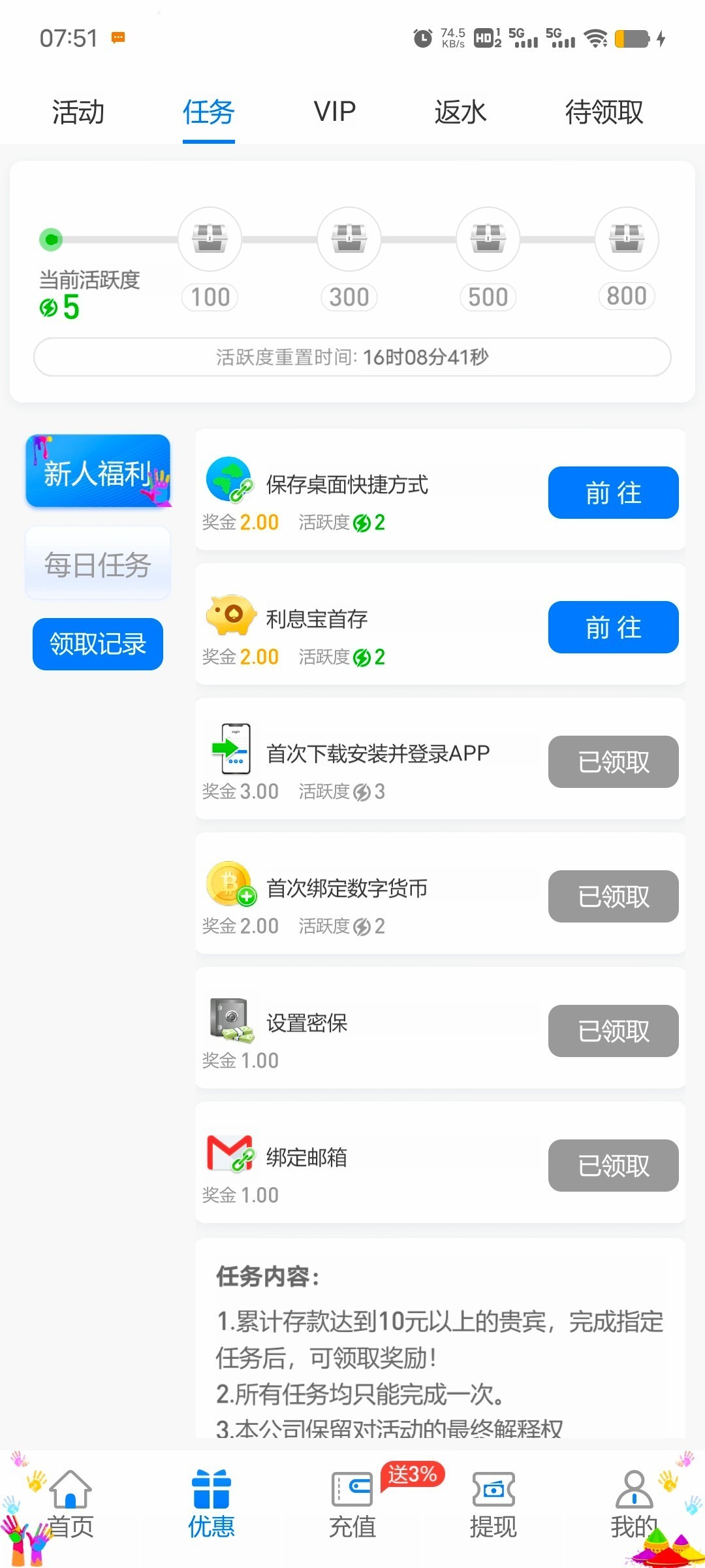 注册绑卡,首页任务几个小任务共计11元,出款自测!