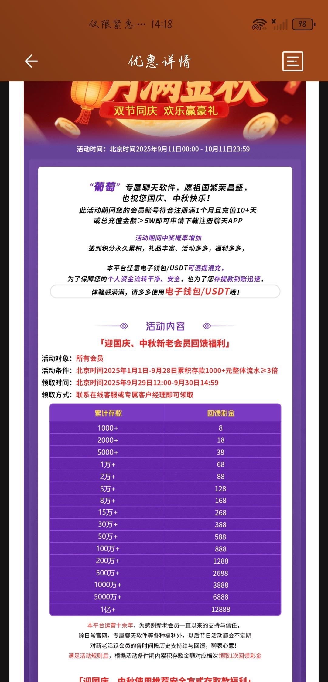 今年充值过去国庆回馈这一系列台子都有