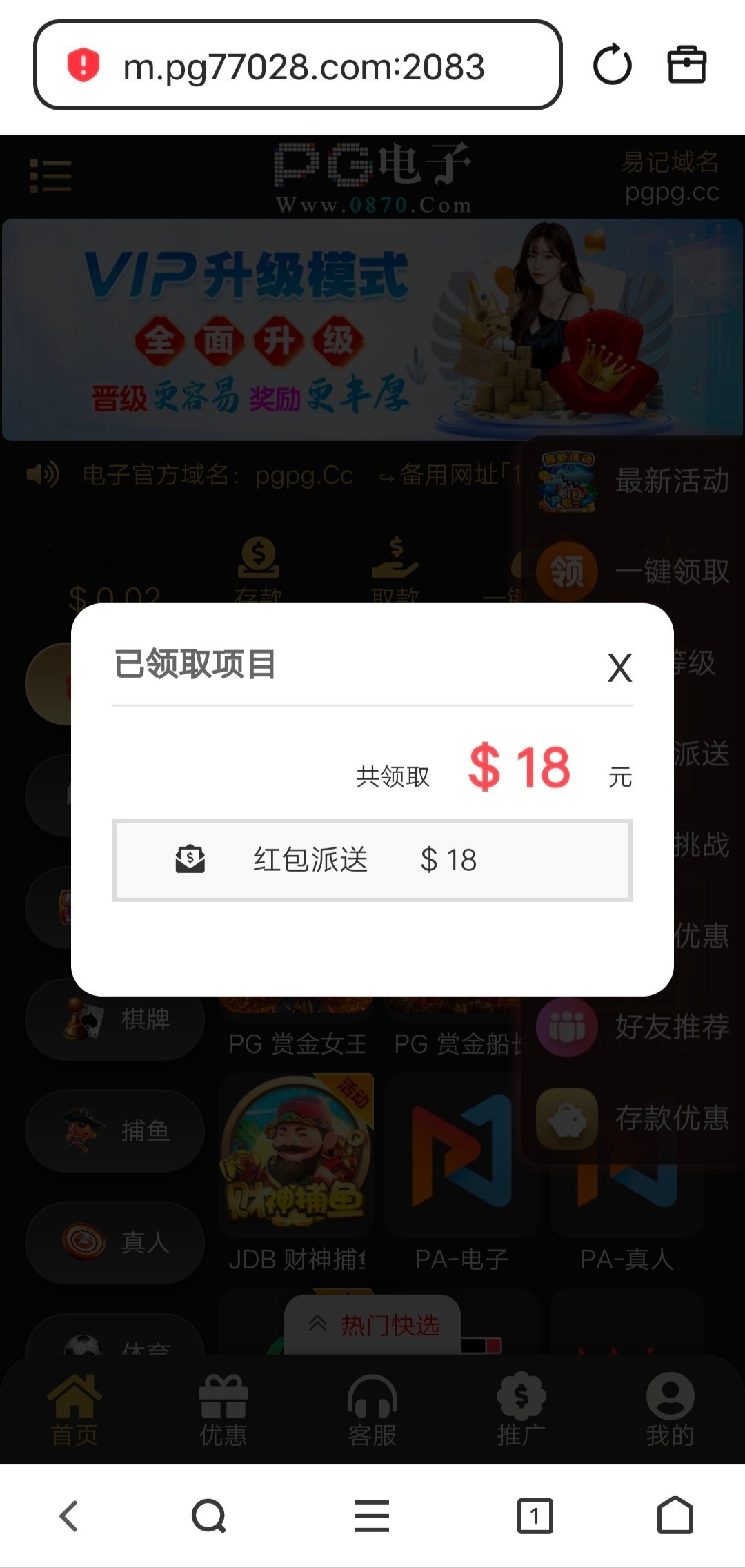 接到电话说送彩金,登录直接领18,网站77010.vip