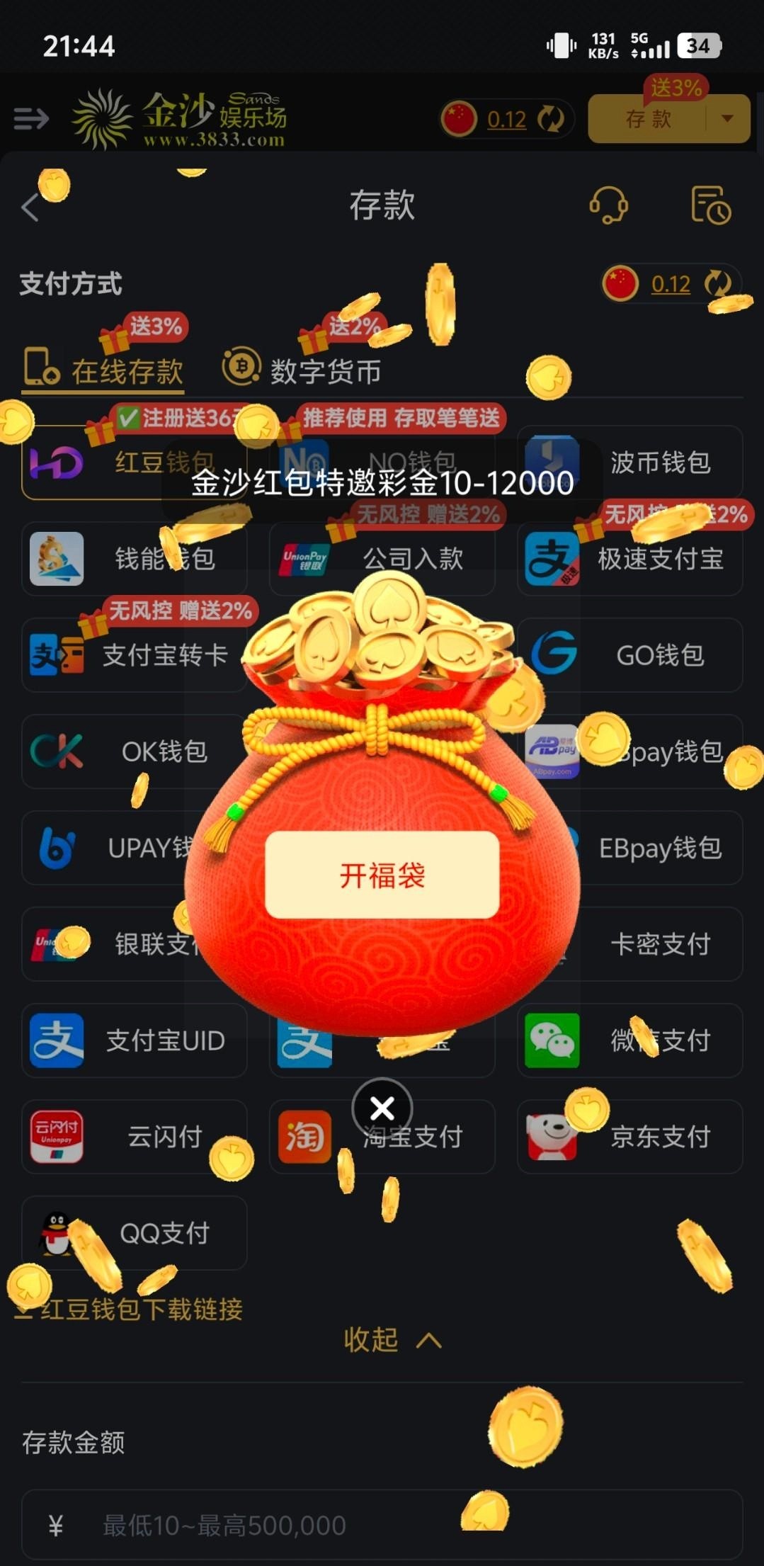 链接3833.com 有号的登陆自动弹窗 100就可以提福袋复活 之前领国一次今天油弹窗弹了一次 祝老哥们好运