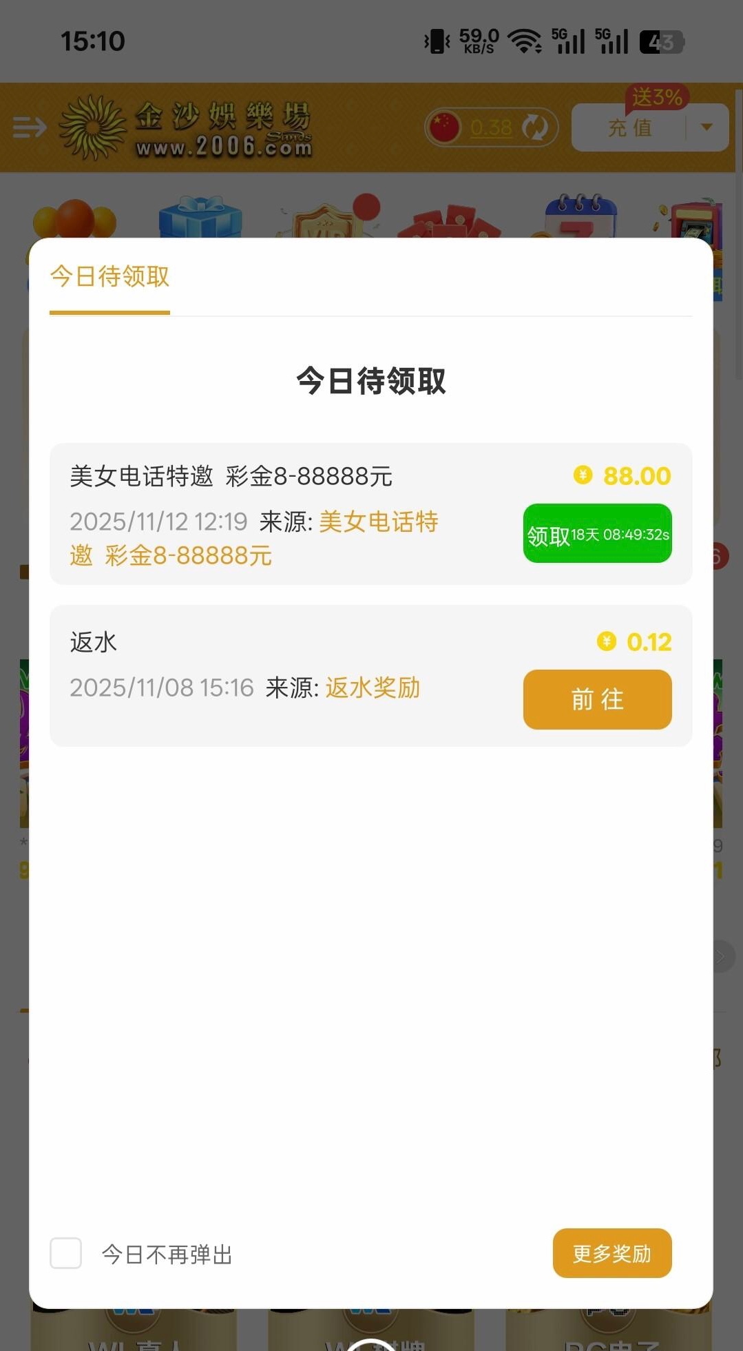 链接2006.vip今天登录上去发现有88电话彩金,老用户去看看
