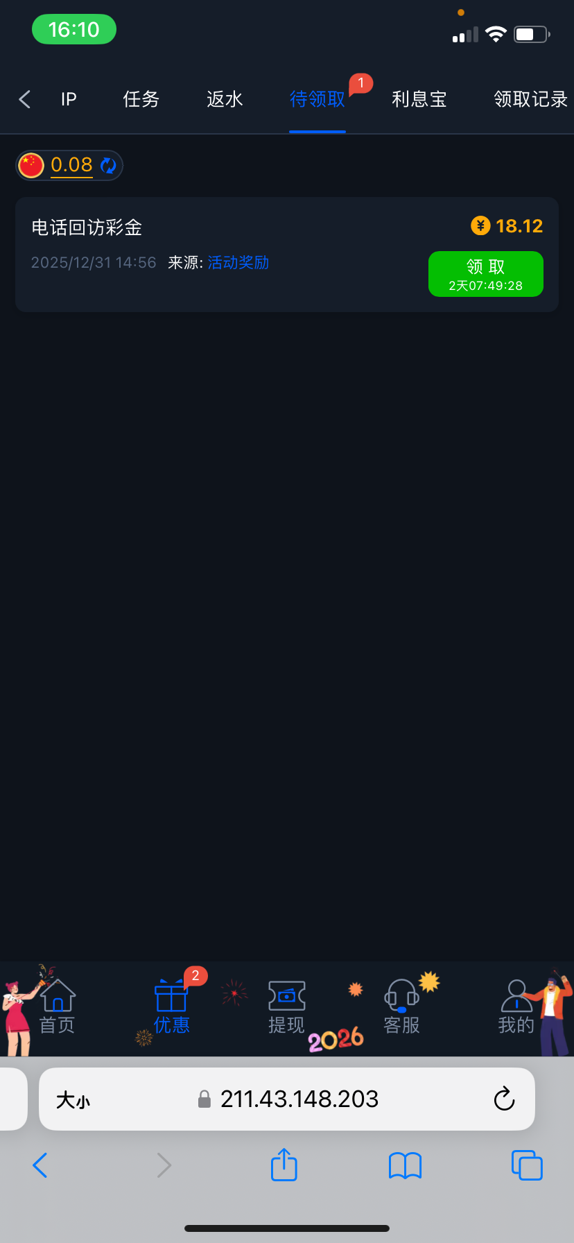 电话回访彩金 没接到电话的可以碰瓷 充值是傻逼