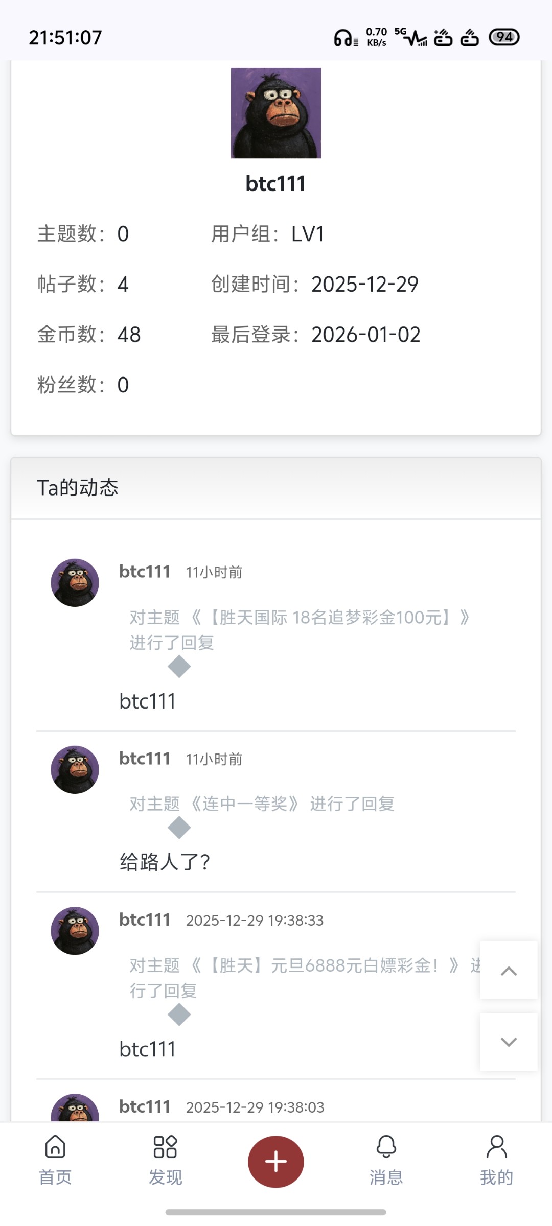 3、本站资源均来自互联网-需自行判断与负责。每日更新(论坛内容仅用于 薅羊毛 白嫖 论坛严禁充值娱乐 严禁任何形式推广 发现一律提交当地公安 )感谢您的支持!