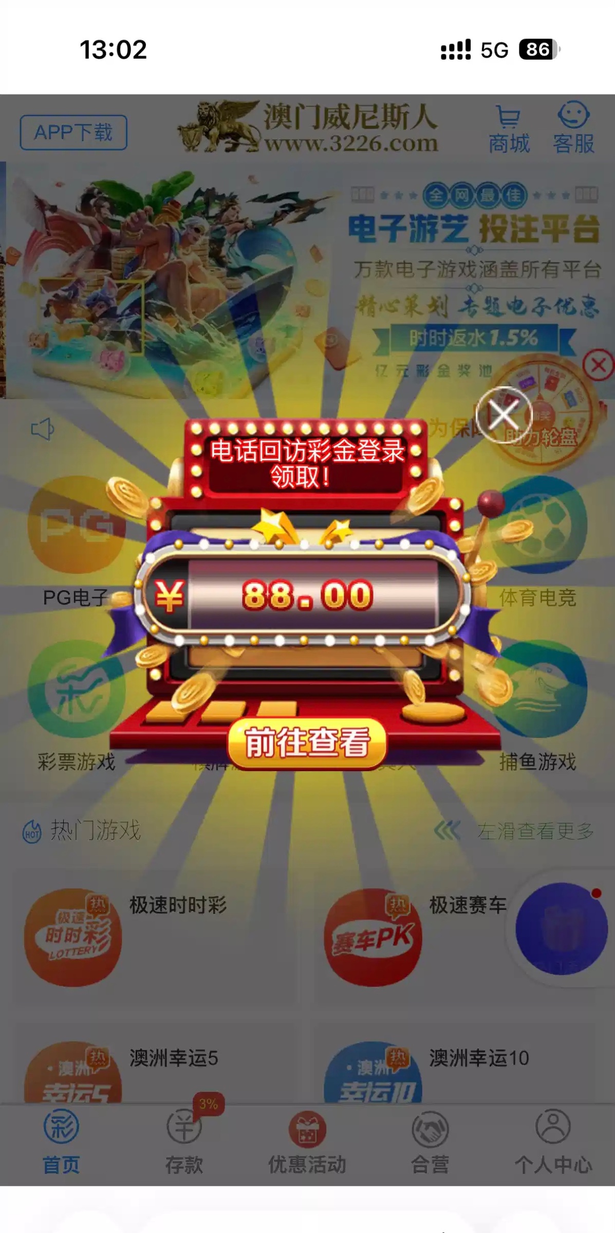 电话回访彩金,登入自动送,上一次还是388,这次扣的才88链接3226.com