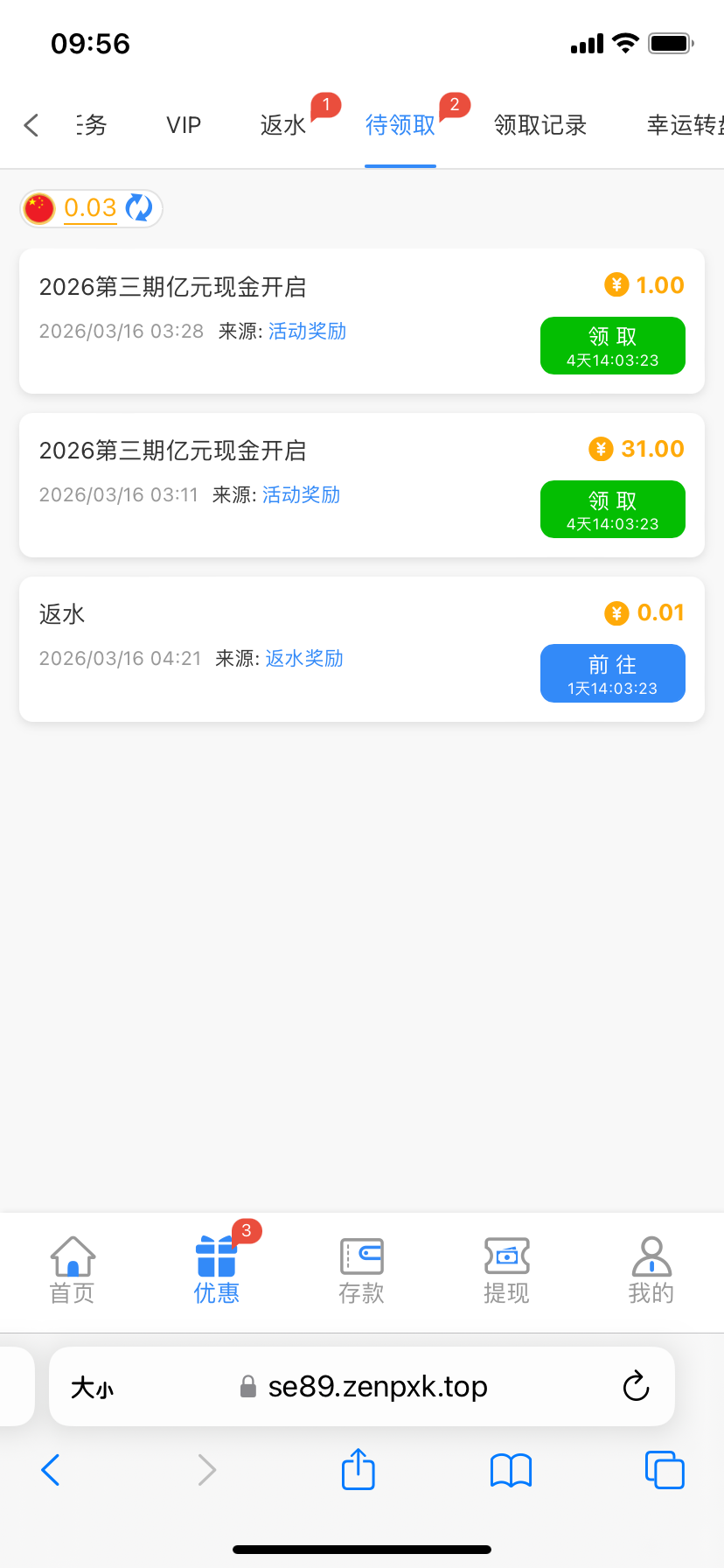 3月16之前注册的都有31, 充值一次才能领取,微信或支付宝可以充1块, 531.com
