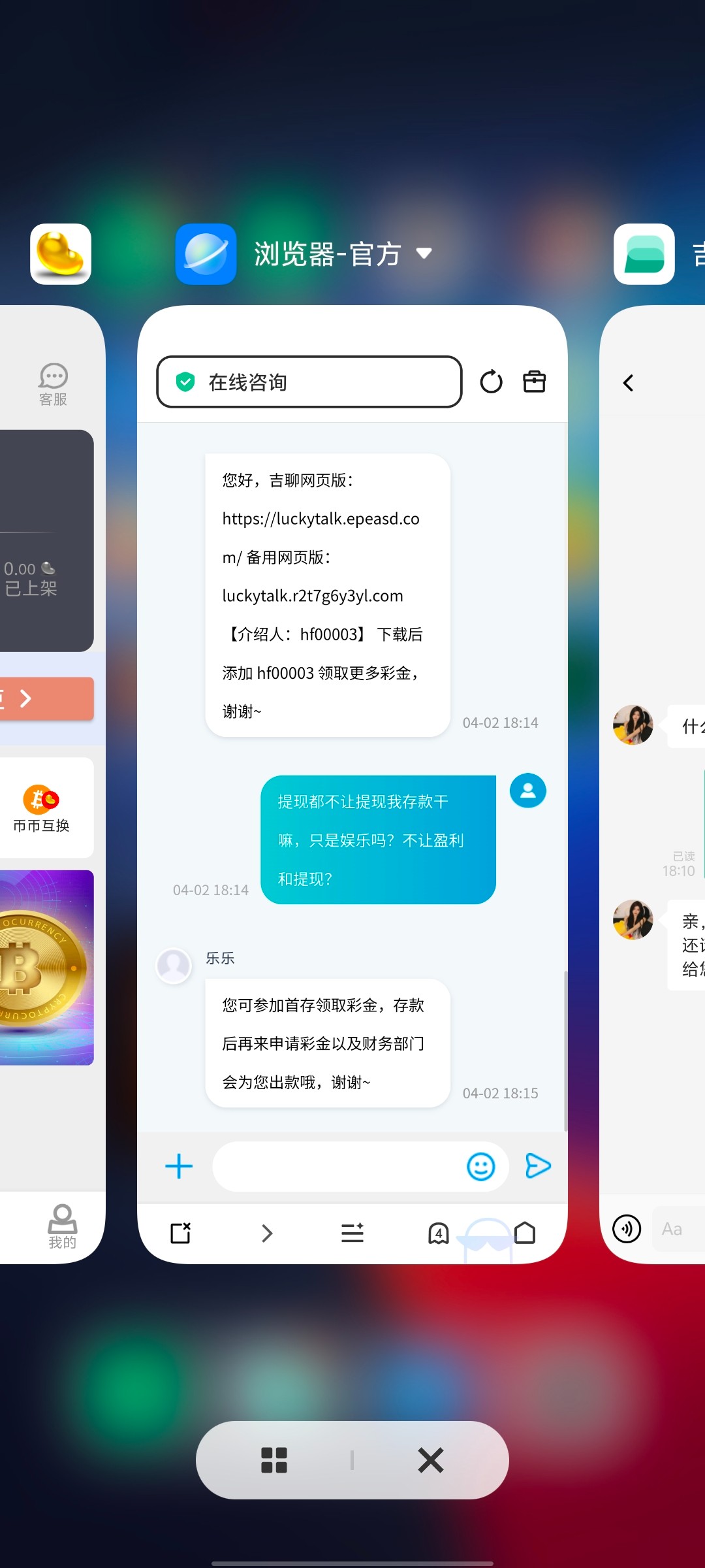 收到短信去的,看到以为送18!结果客服说是送3天,50+50+88,想碰的可以去碰下!3倍水,已经出款成功注册下载吉聊然后找在线客服说登录不了